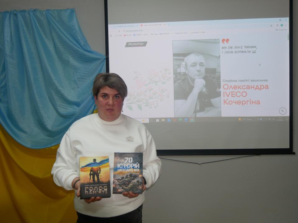 Примірники було передано публічній бібліотеці. Тетяна Кочергіна дякувала присутнім, наголошувала на важливості берегти пам'ять про тих, хто віддав найцінніше за Україну.