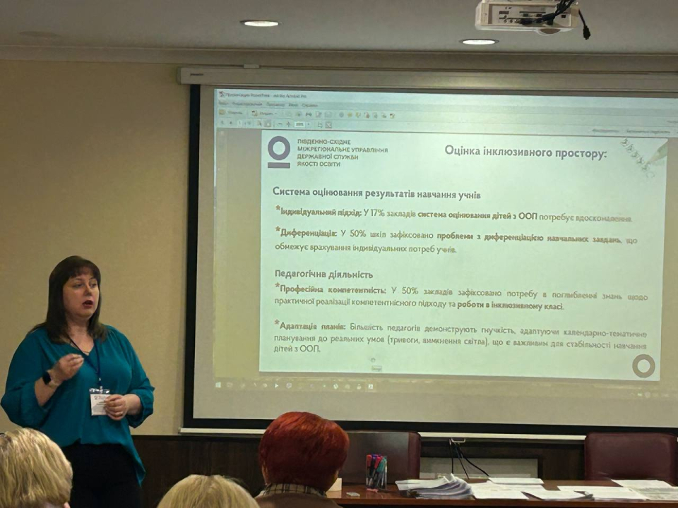 Південно-Східним міжрегіональним управлінням Державної служби якості освіти проведено навчання щодо використання практичних інструментів розбудови внутрішньої системи забезпечення якості освіти, організації самооцінювання, розвитку інклюзивного освітнього середовища та впровадження принципів безбар’єрності як складової доступної та якісної освіти для всіх.