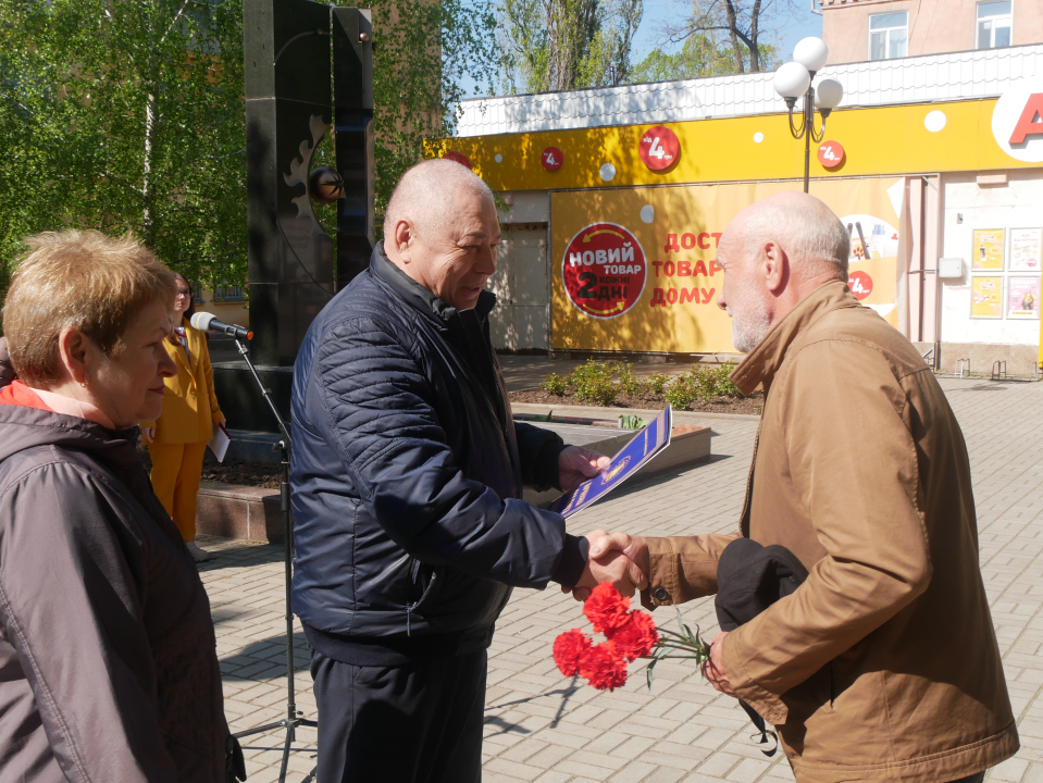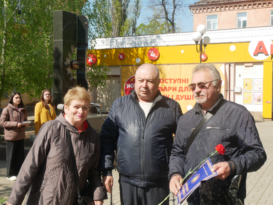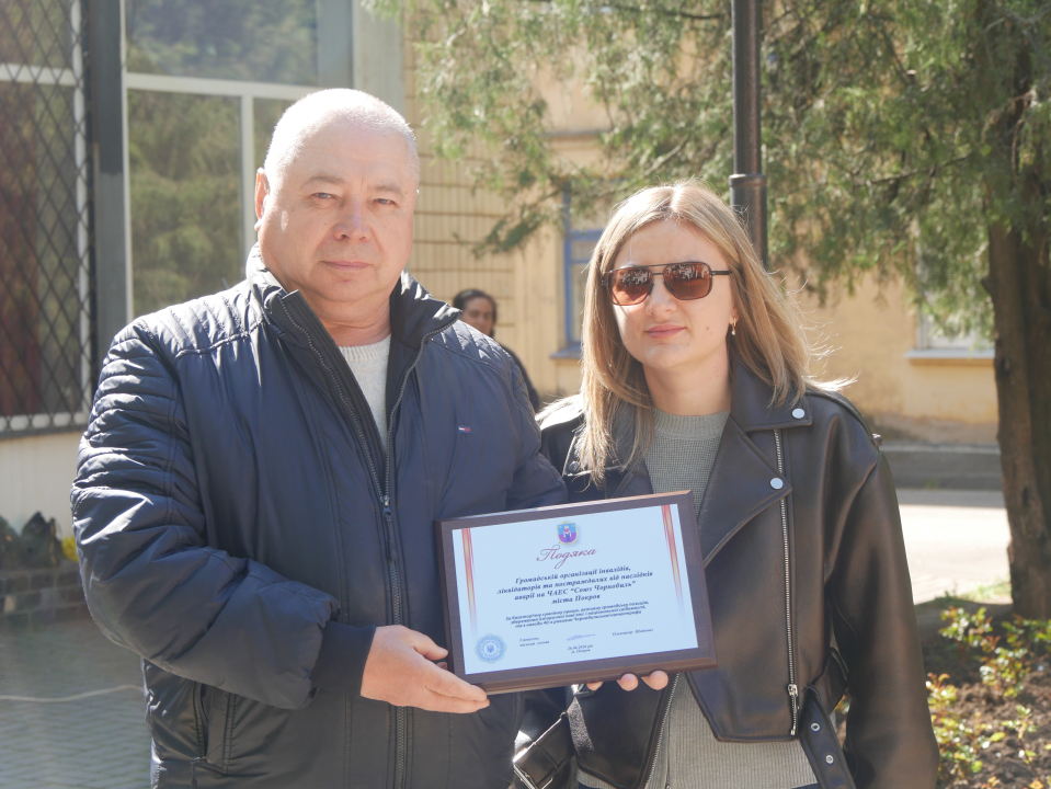 Від імені міського голови Олександра Шаповала, його заступник  Дар’я Горчакова вручила Юрію Середі  Подяку громадській організації "Союз Чорнобиль" зі словами щирої вдячності.Сьогодні, в умовах повномасштабної війни, тема Чорнобиля звучить особливо гостро. Досвід ліквідаторів - це приклад відповідальності, мужності та згуртованості. Міська організація «Союз Чорнобиль» допомагає військовим, підтримує побратимів. Загартовані випробуваннями, вони зберігають братерство, демонструючи людяність, солідарність – любов до своєї землі.