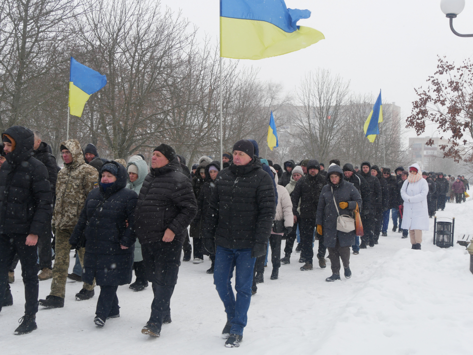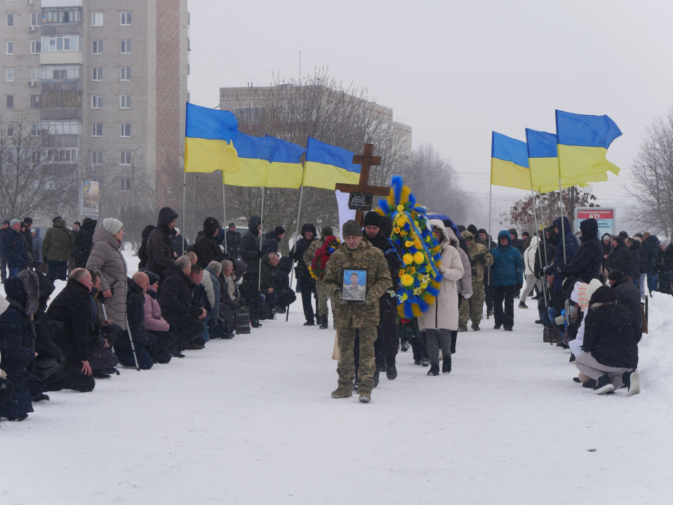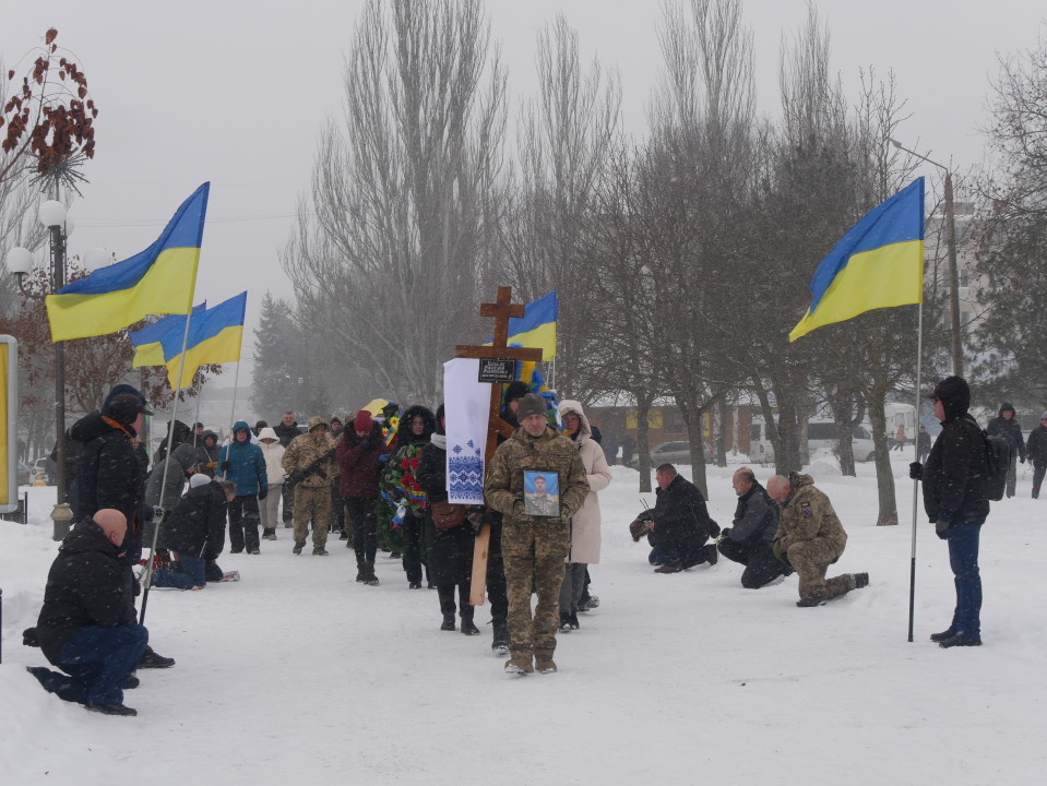 Рідні, друзі, представники влади, численні містяни несли воїну квіти. Над бульваром линула «Плине кача». Захисника проводжали під синьо-жовтими прапорами, через живий коридор пошани. Покровчани прихиляли у шані коліна.