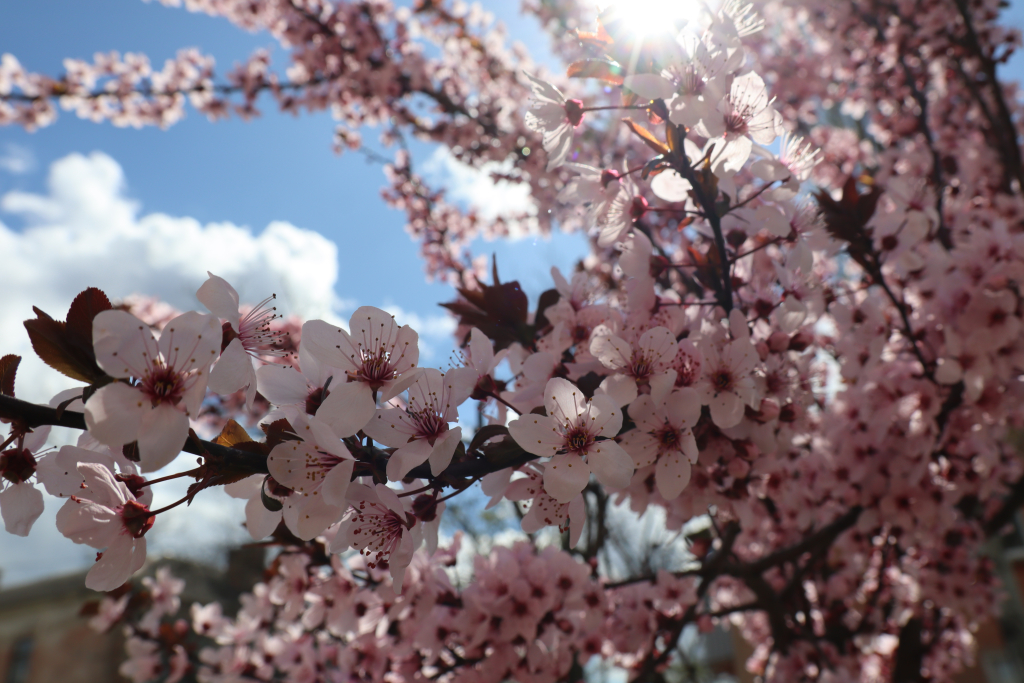 Ніжно-рожеві квіти декоративних слив додали весняного акценту міському простору. Їхні крони-хмаринки нікого не залишають байдужими, бо створюють особливий шарм, оздоблюючи вулиці Покрова.