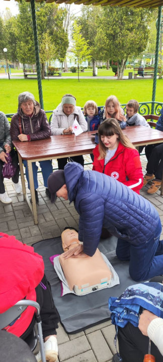 У межах акції для мешканців різного віку організували навчання з надання першої допомоги. Учасники мали змогу ознайомитися з базовими алгоритмами дій у різних надзвичайних ситуаціях. Окрему увагу приділили інформуванню щодо мінної небезпеки. Волонтери роз’яснювали правила поведінки у разі виявлення вибухонебезпечних предметів.