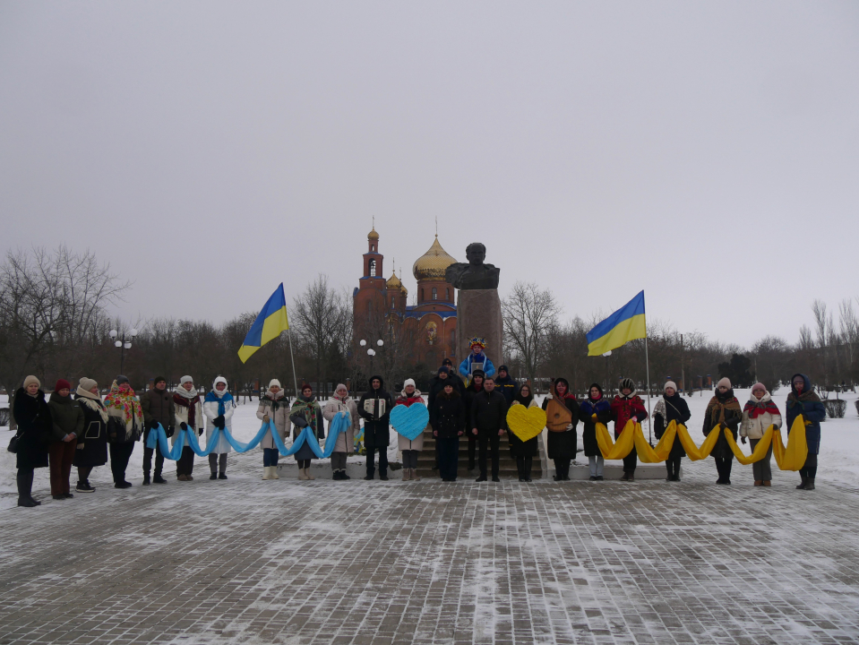 Патріотичним флешмобом учасники заходу підкреслили спільне прагнення до головної мети сьогодення - досягнення справедливого миру. Фахівці закладів культури утворили символічний ланцюг єдності.