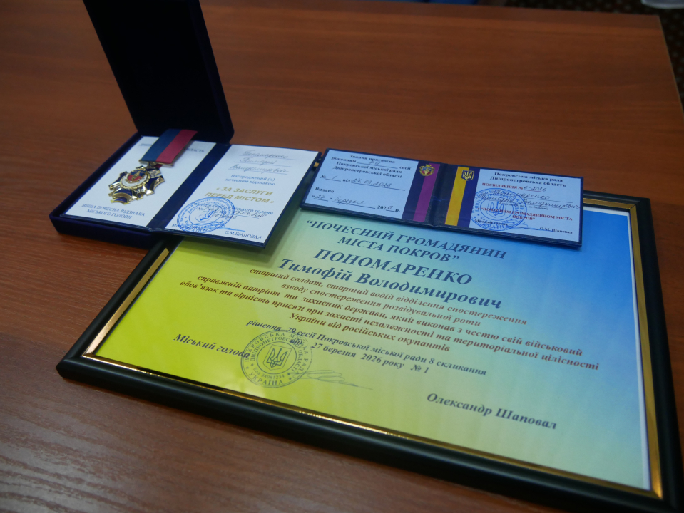 Депутати одноголосно підтримали проєкт рішення про присвоєння звання “Почесний громадянин міста Покров” (посмертно) Тимофію Пономаренку.