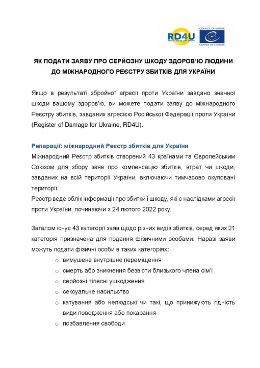 Слідкуйте за новинами на офіційному вебсайті Реєстру збитків для України та повідомленнями в соціальних мережах @ X (Twitter) О Facebook Ф LinkedIn О YouTube