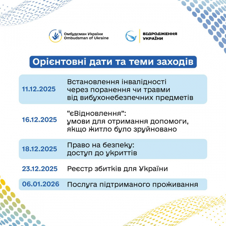 «На вас чекають виступи спікерів про практичні можливості у різних сферах. Ви зможете ставити свої запитання, а відповідатимуть на них представники міністерств та Офісу Омбудсмана», — зазначив Дмитро Лубінець.