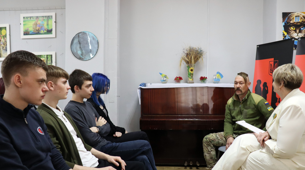 Учні уважно слухали гостя, ставили запитання. Розмова вийшла по-справжньому глибокою, з великою повагою до людського досвіду і до тих, хто сьогодні боронить Україну.