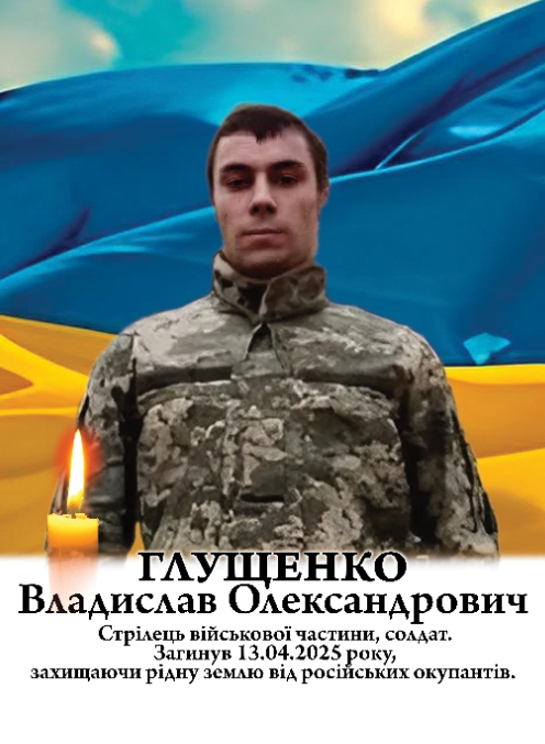 Владислав Глущенко загинув 13 квітня 2025 року у бою біля населеного пункту Лук’янівське, Васильківського району Запорізької області, виявивши мужність, стійкість та відданість присязі, поклавши своє молоде життя за майбутнє України. Воїну було 25 років. У нього залишилися бабуся, батьки, сестра, племінники.