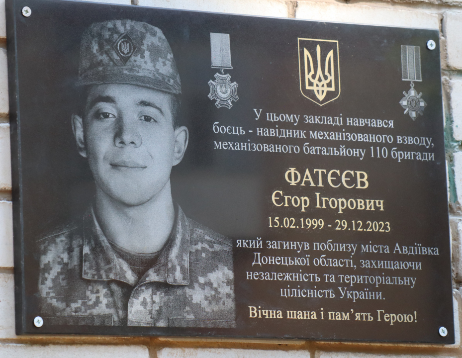 Сьогодні, у День пам'яті загиблих Захисників, на будівлі Ліцею №3, де навчався Герой, урочисто відкрили меморіальну дошку. Вшанувати пам'ять Єгора Фатєєва прийшли рідні, друзі, колектив школи, представники влади, містяни. Лунали щирі слова спогадів про справжнього патріота, який віддав найцінніше за свободу рідної землі.