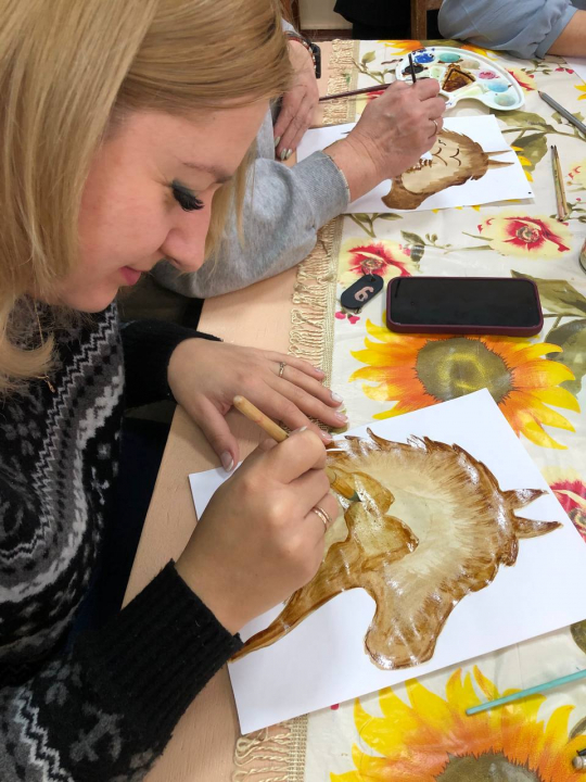 Тут відновлюють ресурси за допомогою музичної терапії, скульптурного живопису і не тільки. Мистецтвом, що лікує, назвали малювання кавою. З цією технікою арт-терапії познайомила викладач школи Тетяна Думчикова. Метод допомагає покращити психологічний стан, зануритись у творчий процес. Вже перші заняття показали ефективність техніки, про що говорили всі, хто доторкнувся до створення картин кавою. У атмосфері тепла й підтримки, спільній творчості народжується внутрішня стійкість – простір для натхнення і життя.