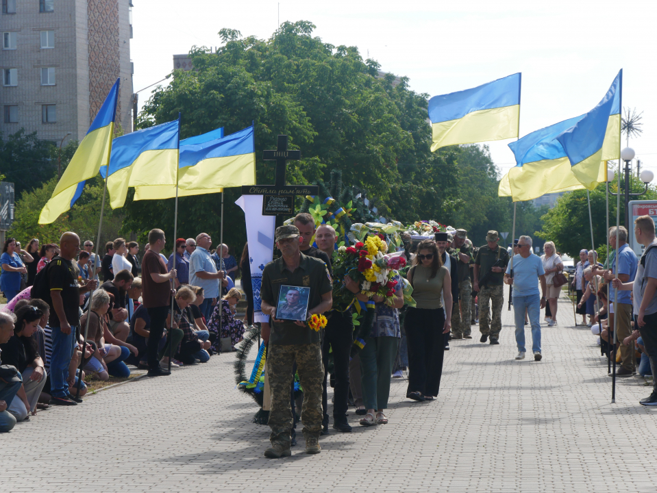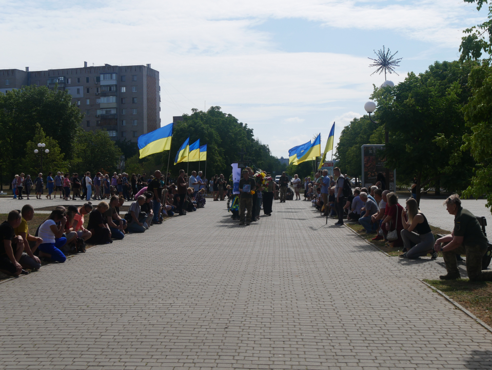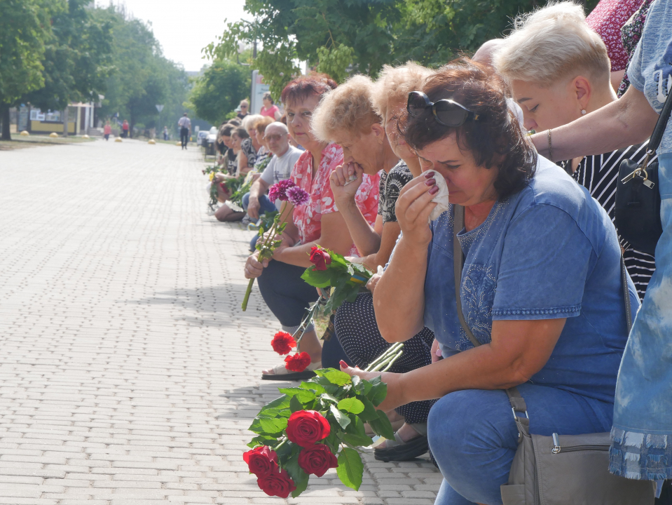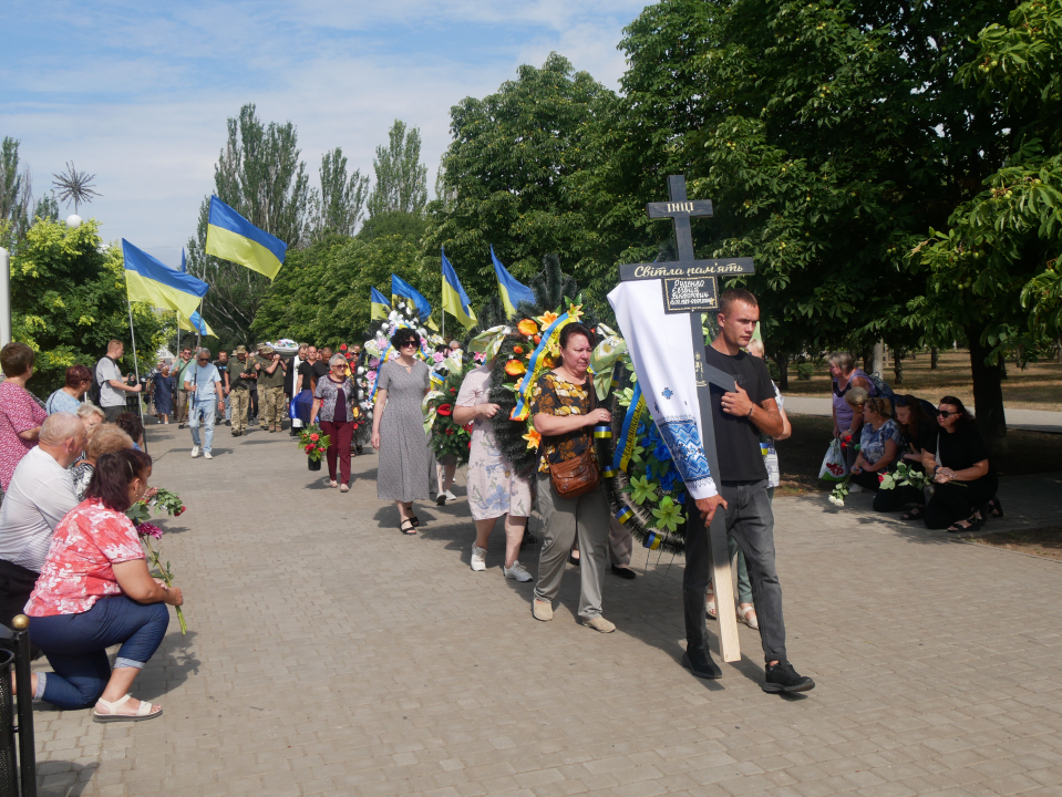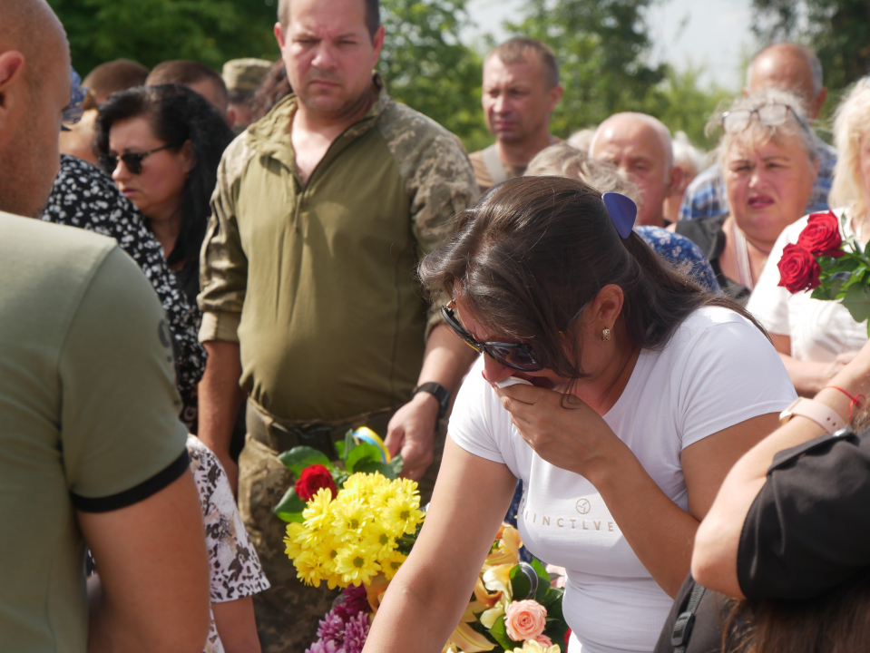 Рідні, друзі, представники влади, містяни несли воїну живі квіти, вшановуючи Героя. Люди прихиляли коліна, стоячи живим коридором пошани.