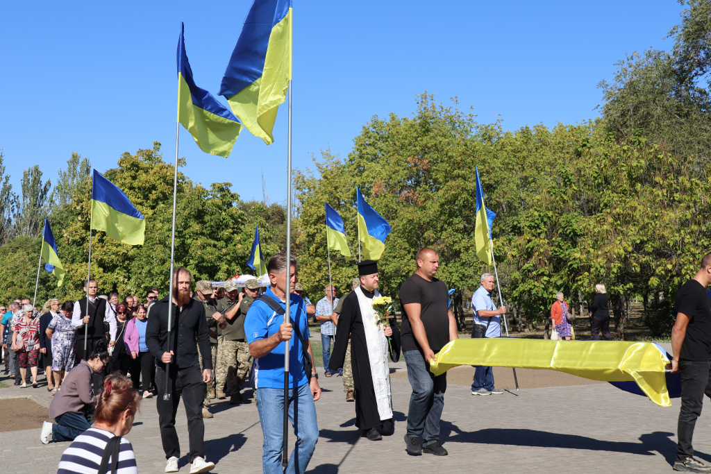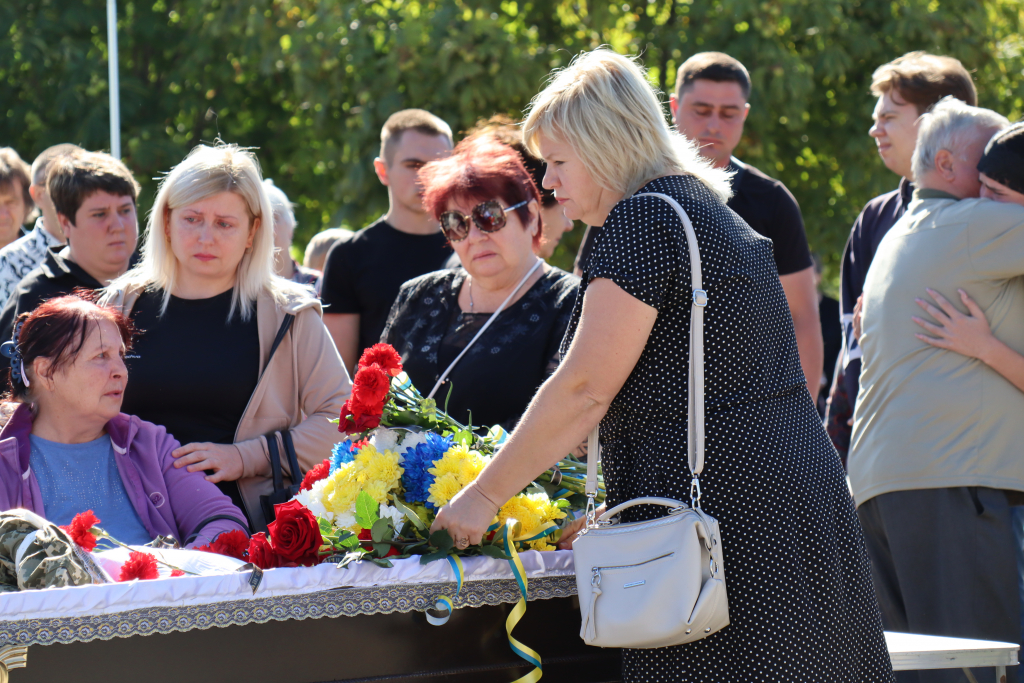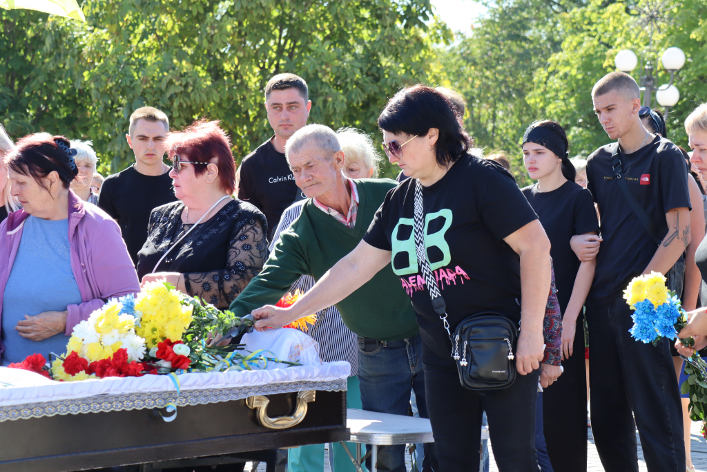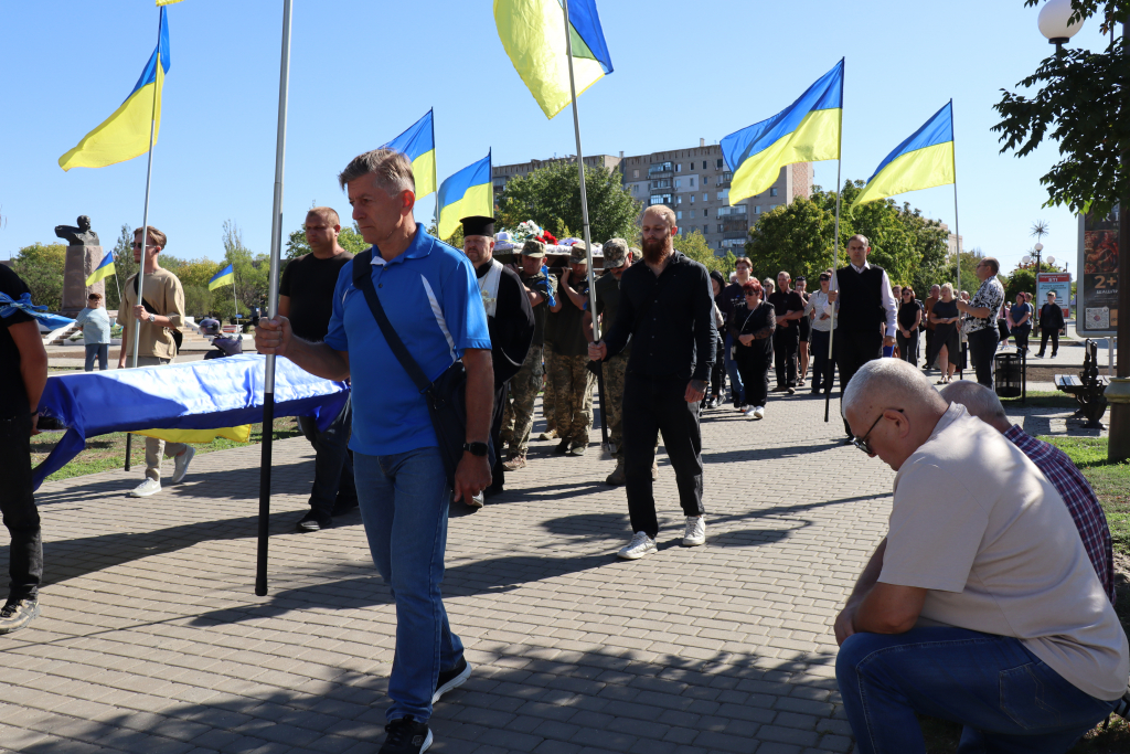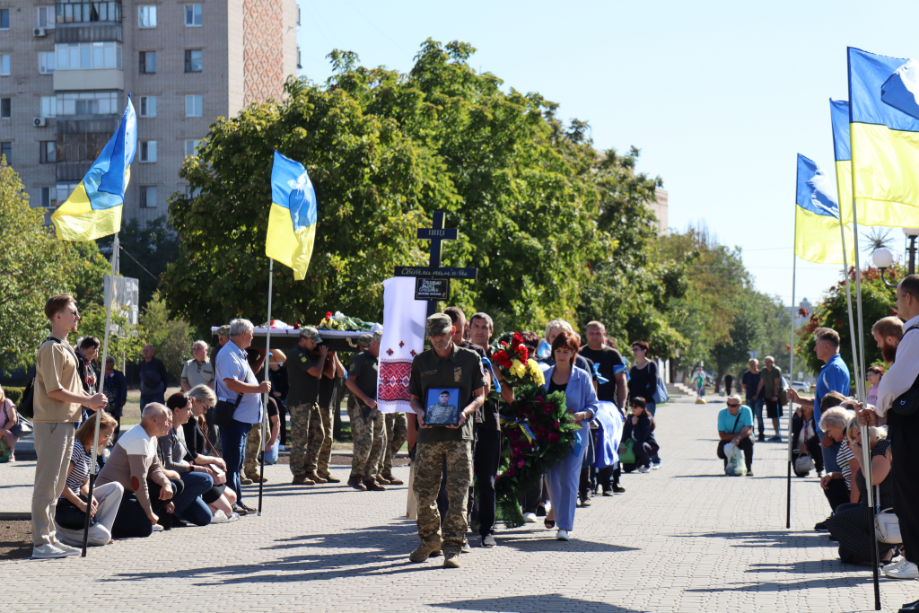 Рідні, друзі, представники влади, численні містяни несли живі квіти воїну. Покровчани не стримували сліз. Проводжали Захисника живим коридором пошани, схиляючи голови у скорботі.