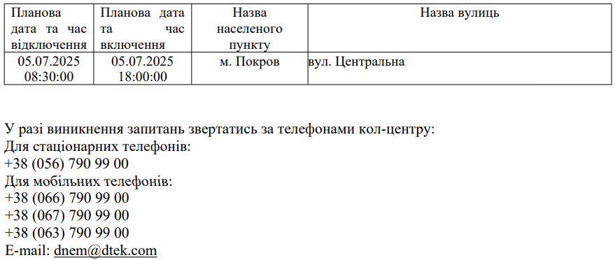 З метою підвищення надійності електропостачання та попередження аварій в електричних мережах АТ «ДТЕК Дніпровські електромережі» 05.07.2025р проводитимуться профілактичні роботи в межах Покровської міської територіальної громади: