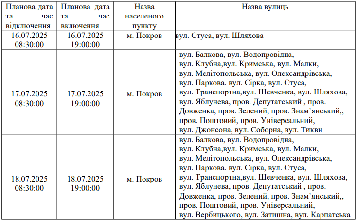 З метою підвищення надійності електропостачання та попередження аварій в електричних мережах АТ «ДТЕК Дніпровські електромережі» 16.07.2025, 17.07.2025, 18.07.2025р проводитимуться профілактичні роботи в межах Покровської міської територіальної громади: