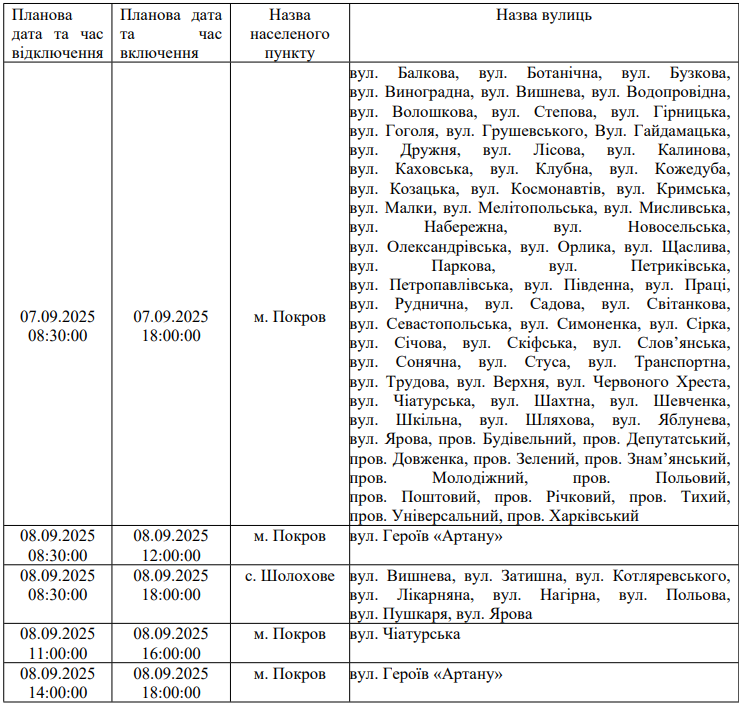 З метою підвищення надійності електропостачання та попередження аварій в електричних мережах АТ «ДТЕК Дніпровські електромережі» 07.09.2025, 08.09.2025 р проводитимуться профілактичні роботи в межах Покровської міської територіальної громади: