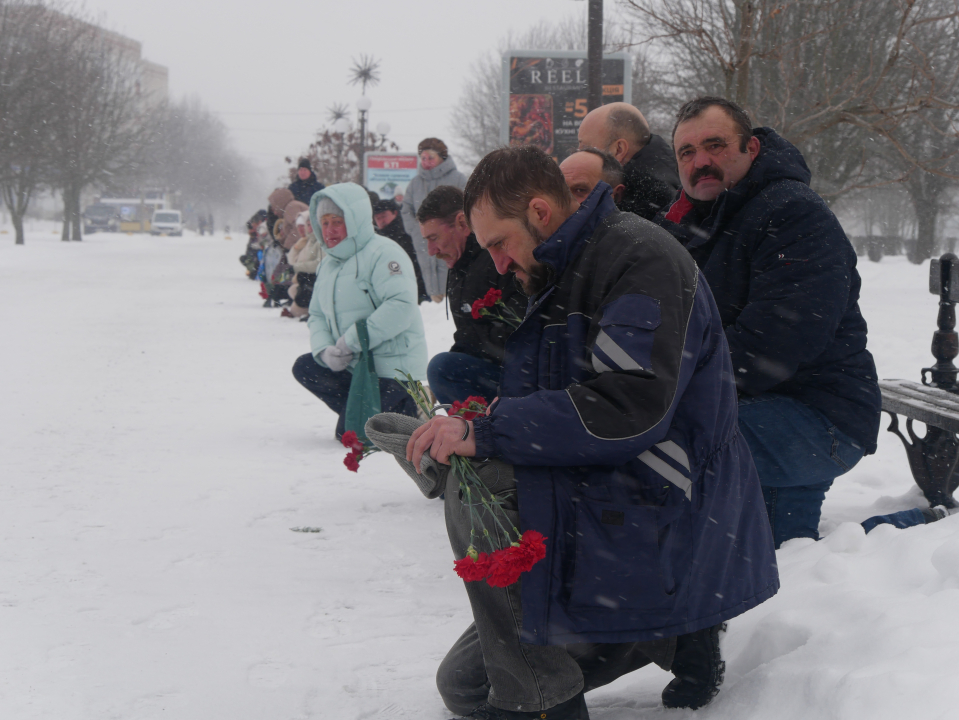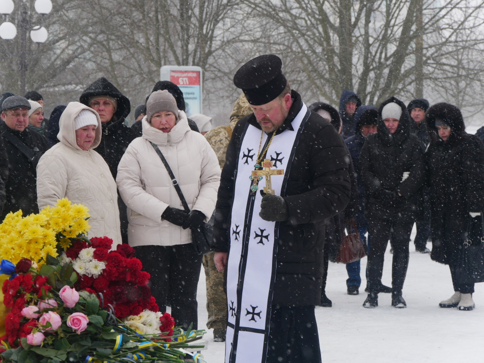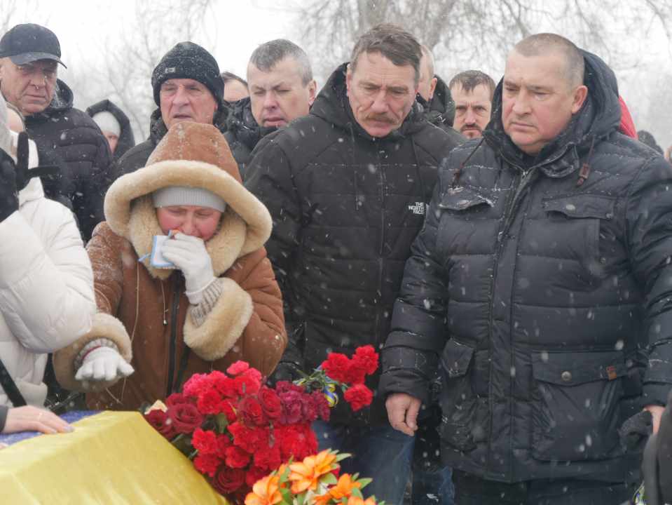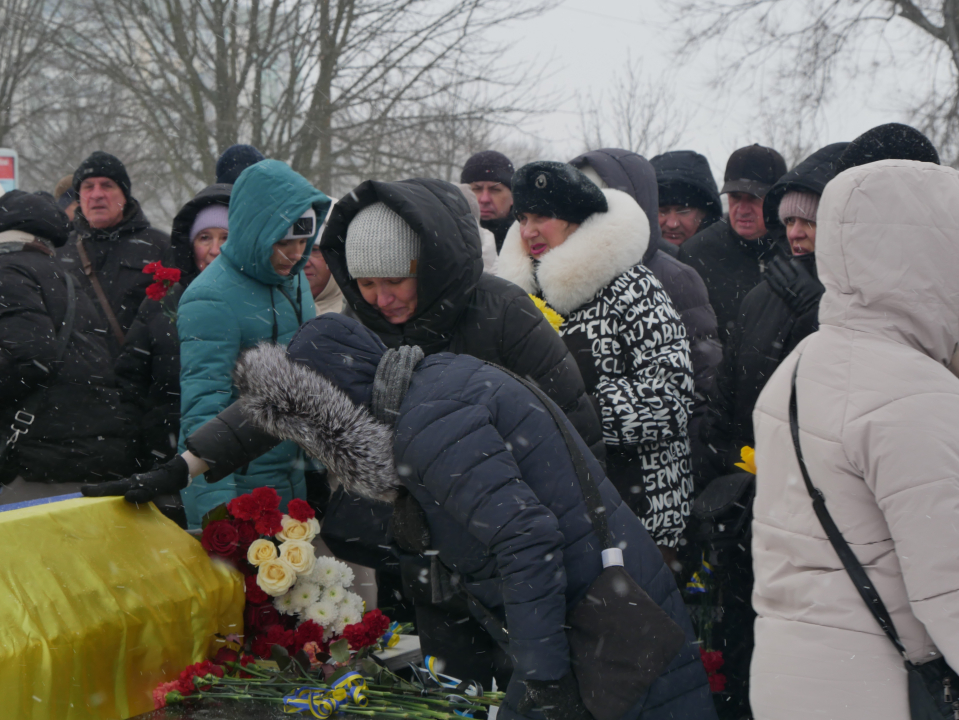 Рідні, друзі, представники влади, численні містяни несли воїну квіти. Над бульваром линула «Плине кача». Захисника проводжали під синьо-жовтими прапорами, через живий коридор пошани. Покровчани прихиляли у шані коліна.