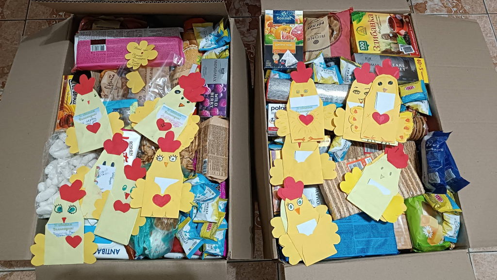 У такому щирому прагненні дітей підтримували вчителі та батьки. Разом з великодніми смаколиками вкладали у пакунки для мужніх воїнів власноруч виготовлені сувеніри, листівки і тепло своїх сердець.