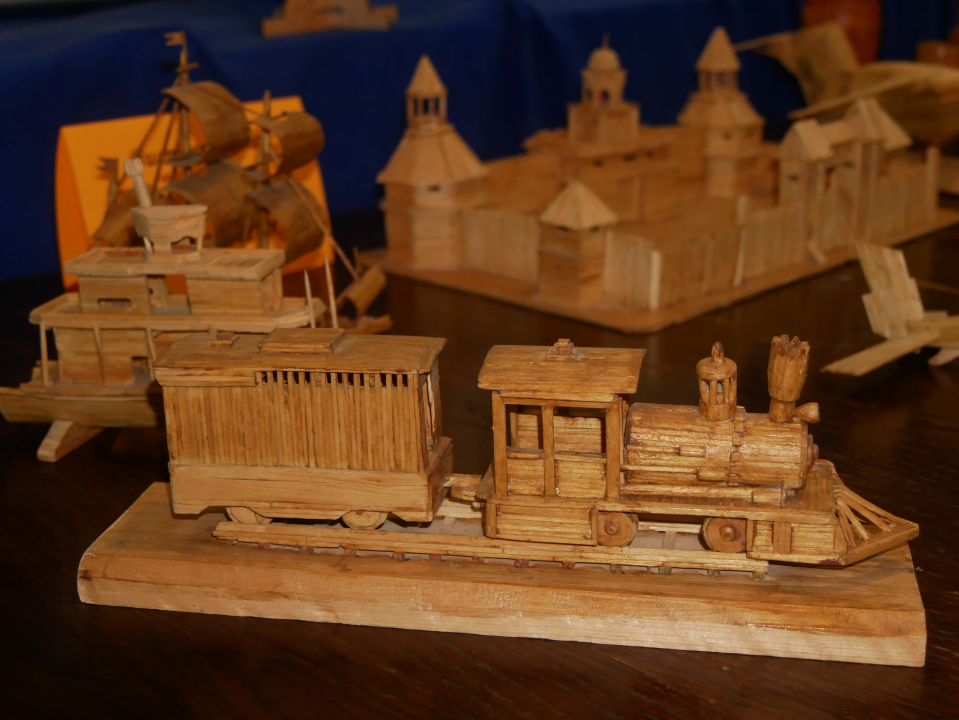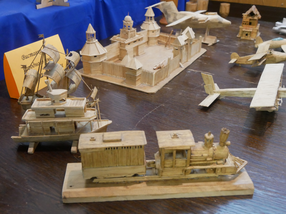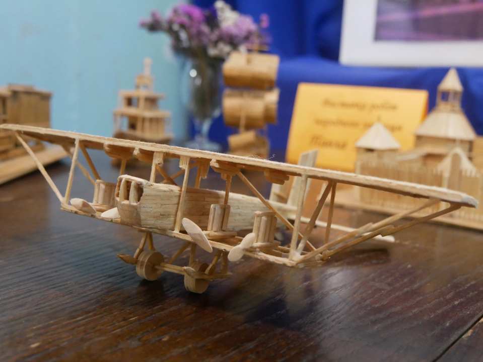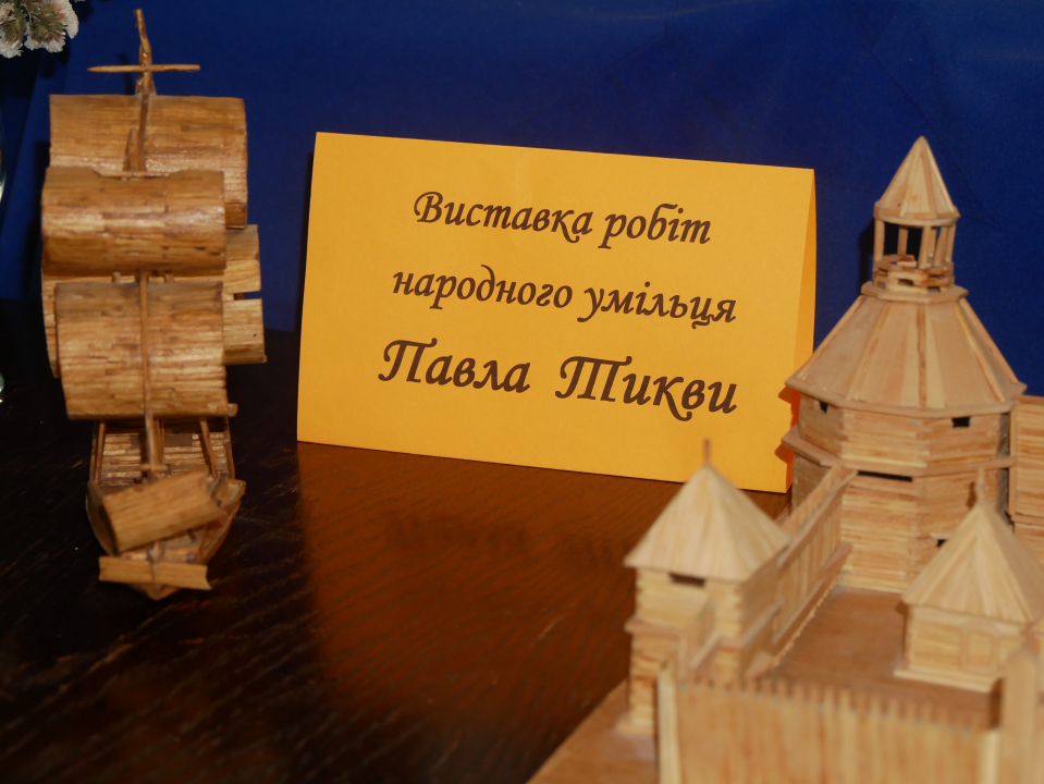Серед представлених — вироби народного майстра Павла Тикви, який не одне десятиліття захоплюється сірникарством. Звичайні сірники у його руках перетворюються на мініатюрні храми, моделі літаків та вітрильників, фортеці та інші архітектурні дива. Цей вид декоративно-ужиткового мистецтва вимагає виняткової точності, терпіння та просторової уяви. Кожна робота – це зразок тонкої інженерної думки і витонченої фантазії, що розкриває потенціал звичайних речей у руках справжнього майстра.