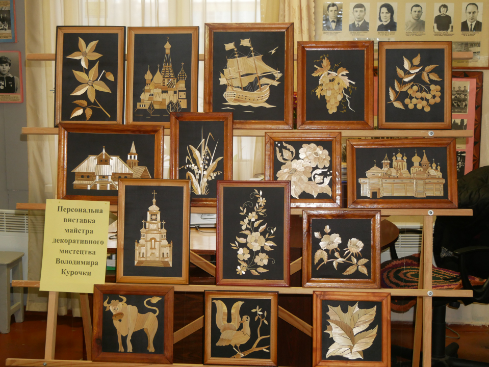 Дивовижні вироби Володимира Курочки – ще одна сторінка виставки. Його твори продовжують давню українську традицію - соломкарства. На картинах оживають рослини, тварини, будівлі. Митець не просто відтворює форми — він створює особливий настрій, у якому відчувається тепло матеріалу, подих природи й любов до рідного краю.