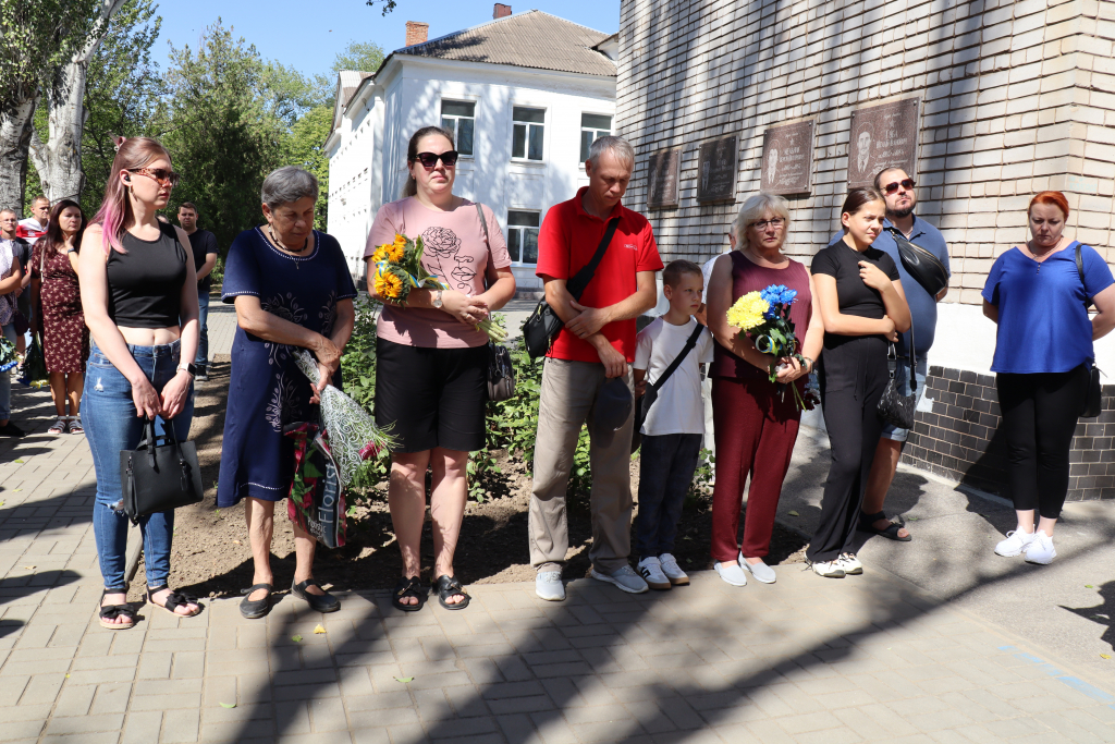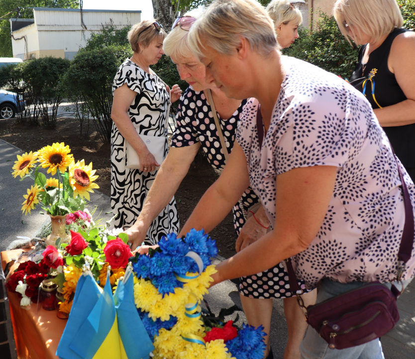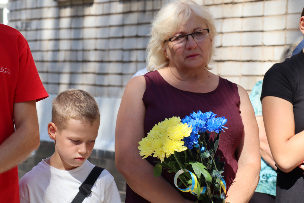 Присутні хвилиною мовчання вшанували Єгора Фатєєва та всіх полеглих Захисників України. Живі квіти лягли до дошки у знак безмежної вдячності та шани.