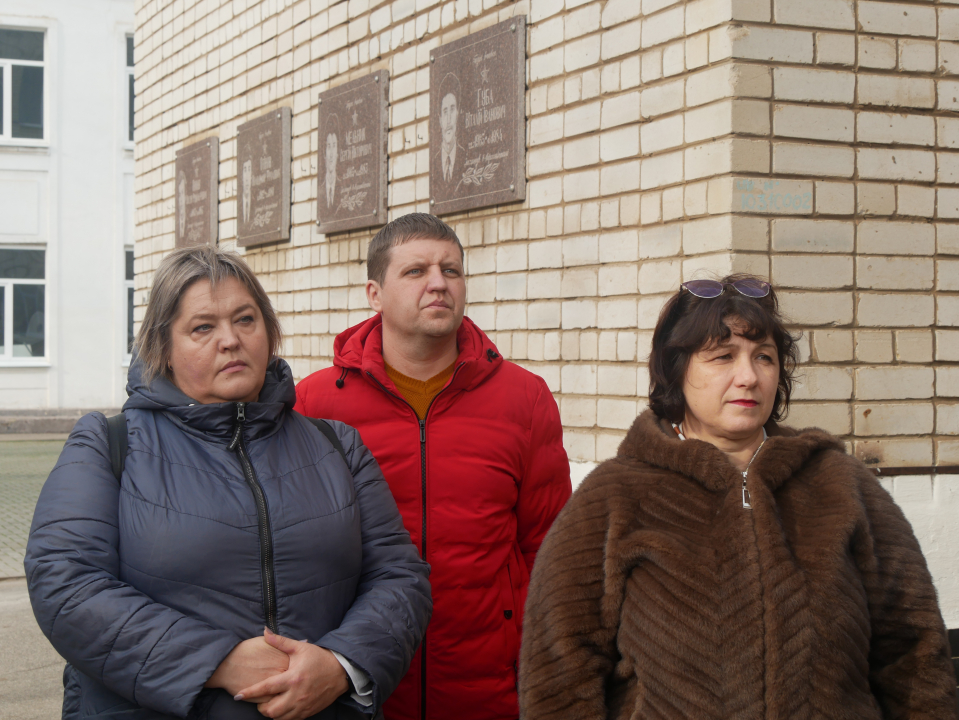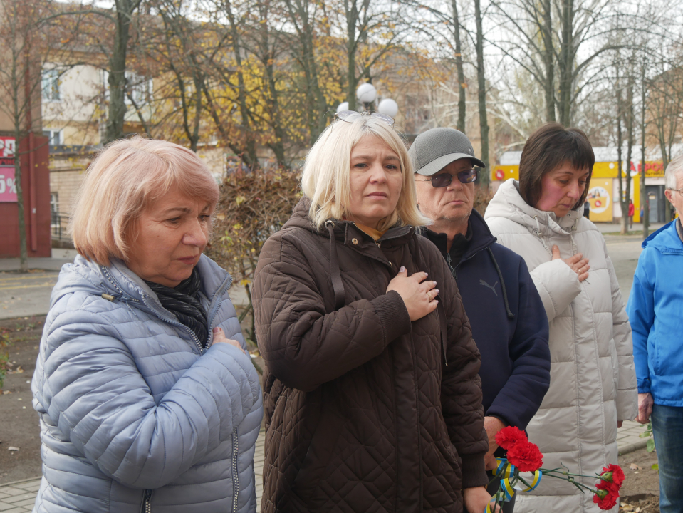 Живі квіти лягли до меморіальної дошки. Присутні схилили голови у хвилині мовчання на знак шани і поваги до Захисника.