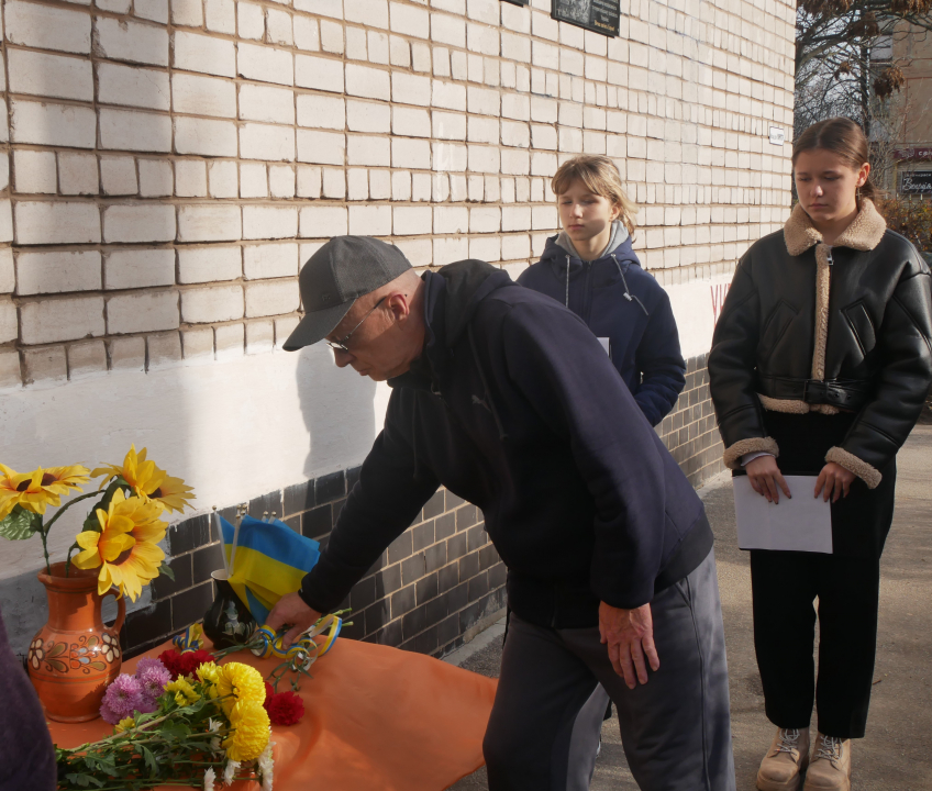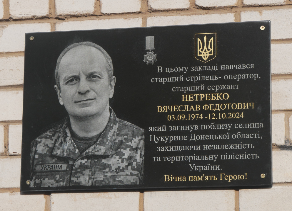 Сьогодні біля ліцею №3 зібралися рідні воїна, друзі, вчителі, небайдужі містяни, аби вшанувати пам'ять Захисника і всіх героїв, які віддали життя за Україну. Лунали слова спогадів про Вячеслава Нетребка, старшого стрільця-оператора, старшого сержанта, колишнього учня ліцею, який став на захист рідної землі.