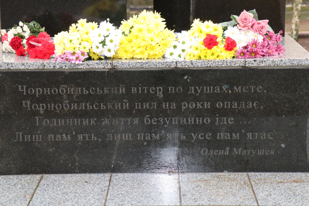 Біля пам’ятного знака «Землякам, які в ім’я життя пройшли крізь полум’я Чорнобиля» представники міської влади, громадськості та ліквідатори поклали квіти у пам’ять про тих, хто жертовно віддав своє життя. Від імені міського голови Олександра Шаповала секретар міської ради Сергій Курасов вручив ліквідаторам Подяки зі словами щирої вдячності.