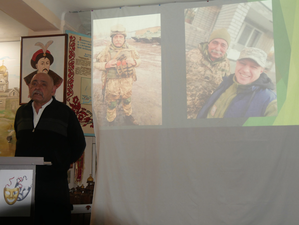 Особливим і глибоким акордом зустрічі стала розмова з Володимиром Стеньком — військовим, учасником бойових дій 2014-2024 років, актором, театральним режисером, драматургом, володарем премії «Коронація слова».