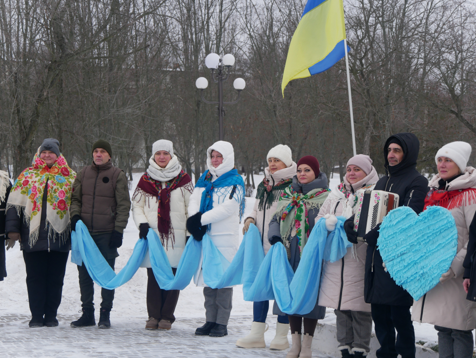 Патріотичним флешмобом учасники заходу підкреслили спільне прагнення до головної мети сьогодення - досягнення справедливого миру. Фахівці закладів культури утворили символічний ланцюг єдності.