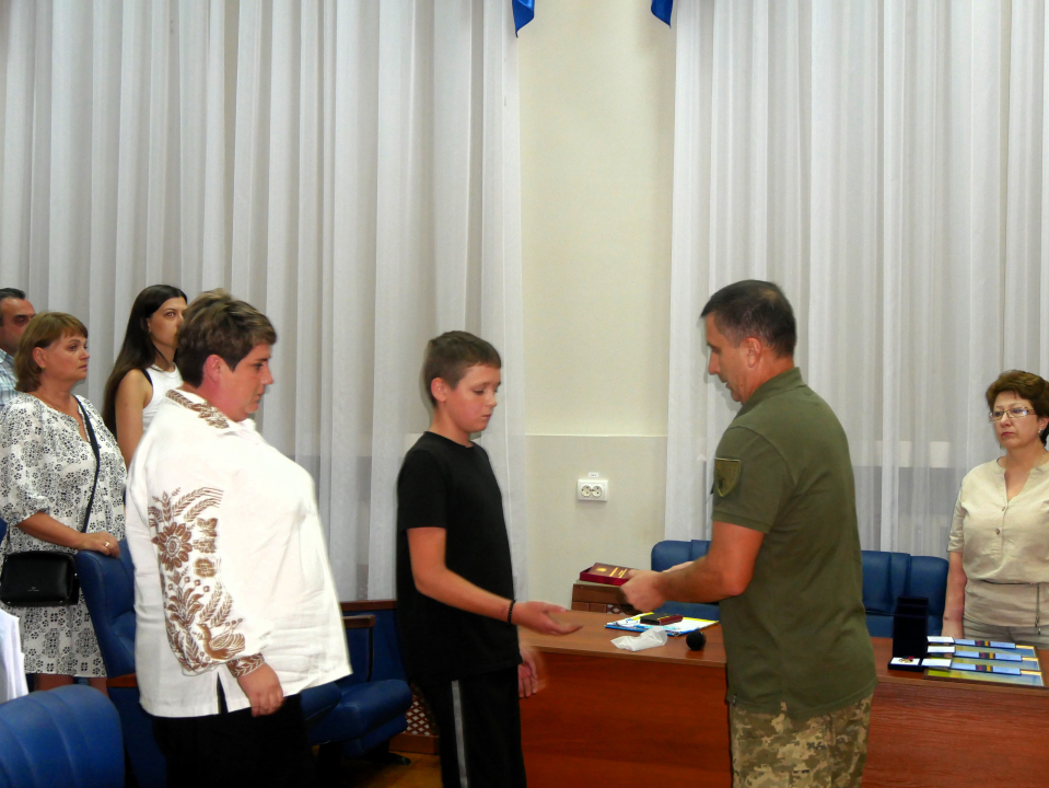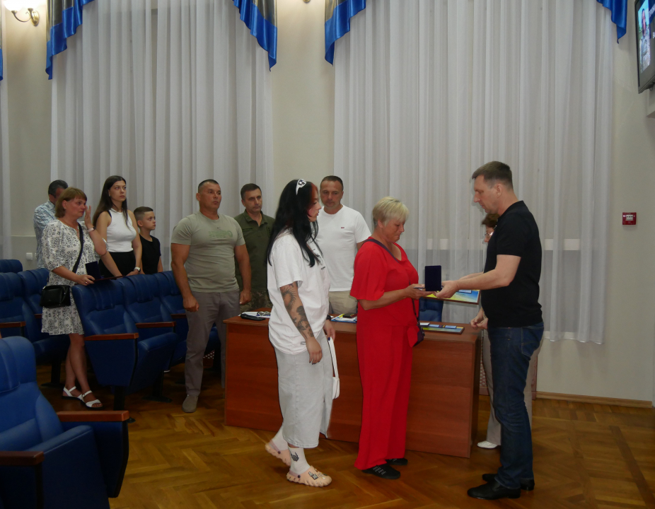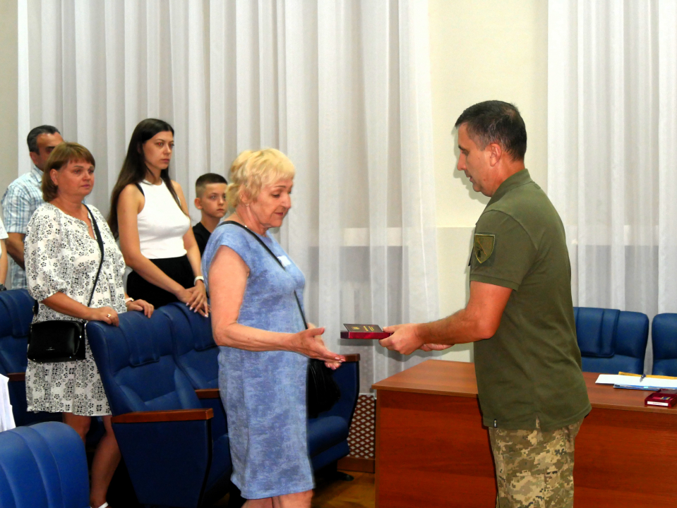 Міський голова Олександр Шаповал вручив відзнаки та медаль "За заслуги перед містом" рідним загиблих воїнів.