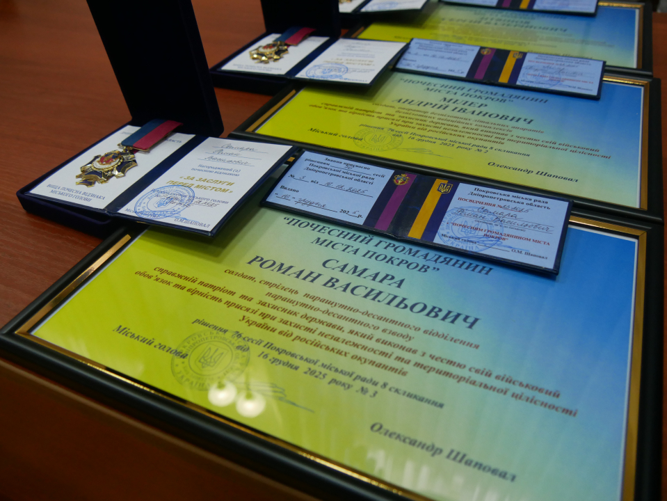 Депутати одноголосно підтримали проєкт рішення про присвоєння звання “Почесний громадянин міста Покров” (посмертно) Сергію Літвінову, Андрію Мілеру, Роману Самарі.