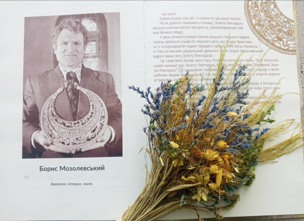 Золота скіфська пектораль, знайдена Борисом Миколайовичем у 1971 році в кургані Товста Могила, відкрила нову сторінку в осмисленні скіфської культури. Та сам Мозолевський бачив у ній не лише золото - він чув у ній голос землі, історії й людини.