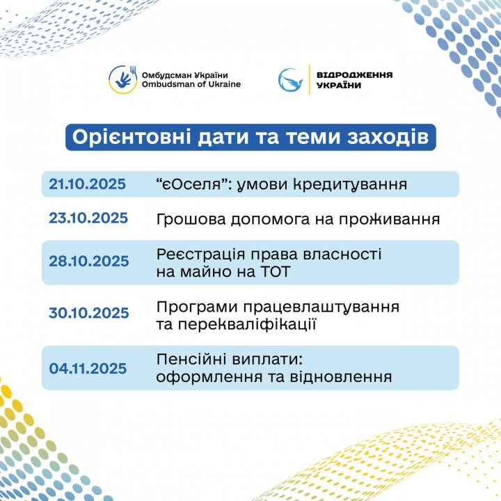 «На вас чекають виступи спікерів про практичні можливості у різних сферах. Ви зможете ставити свої запитання, а відповідатимуть на них представники міністерств та Офісу Омбудсмана», — зазначив Дмитро Лубінець.