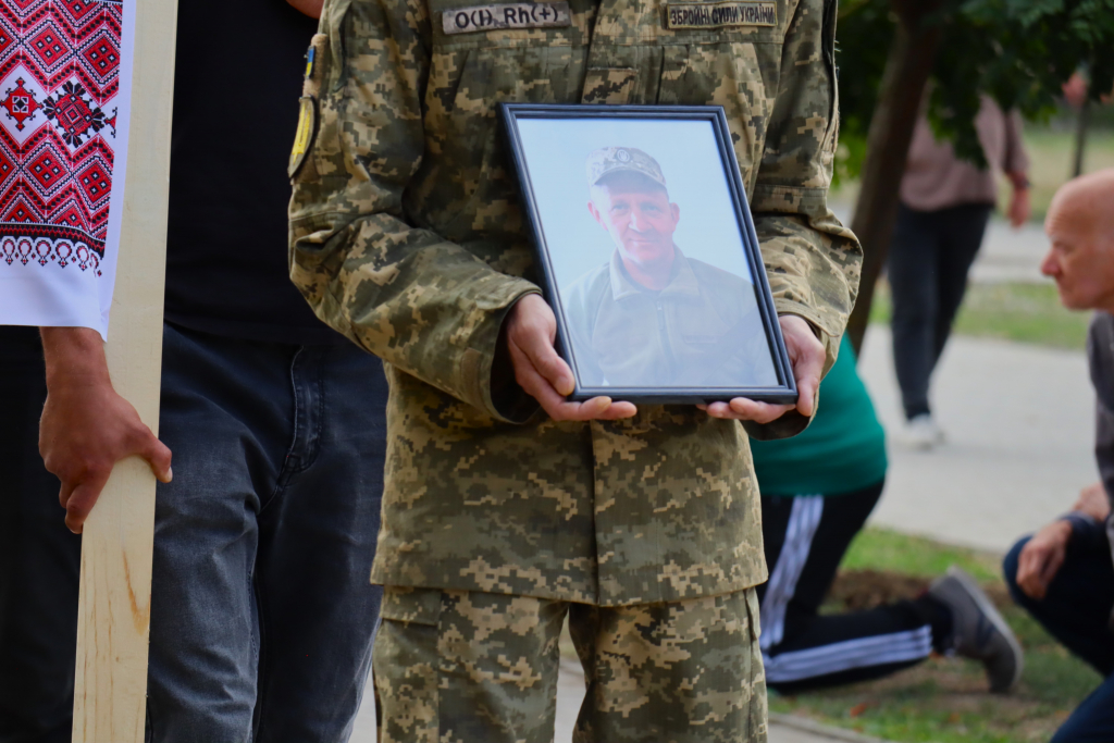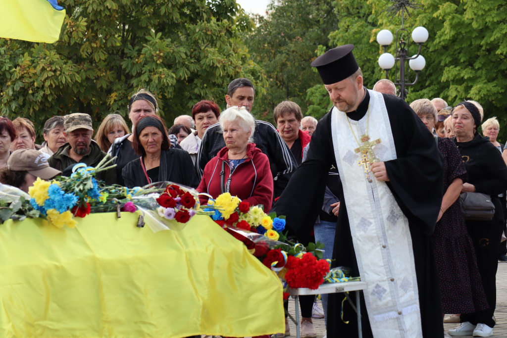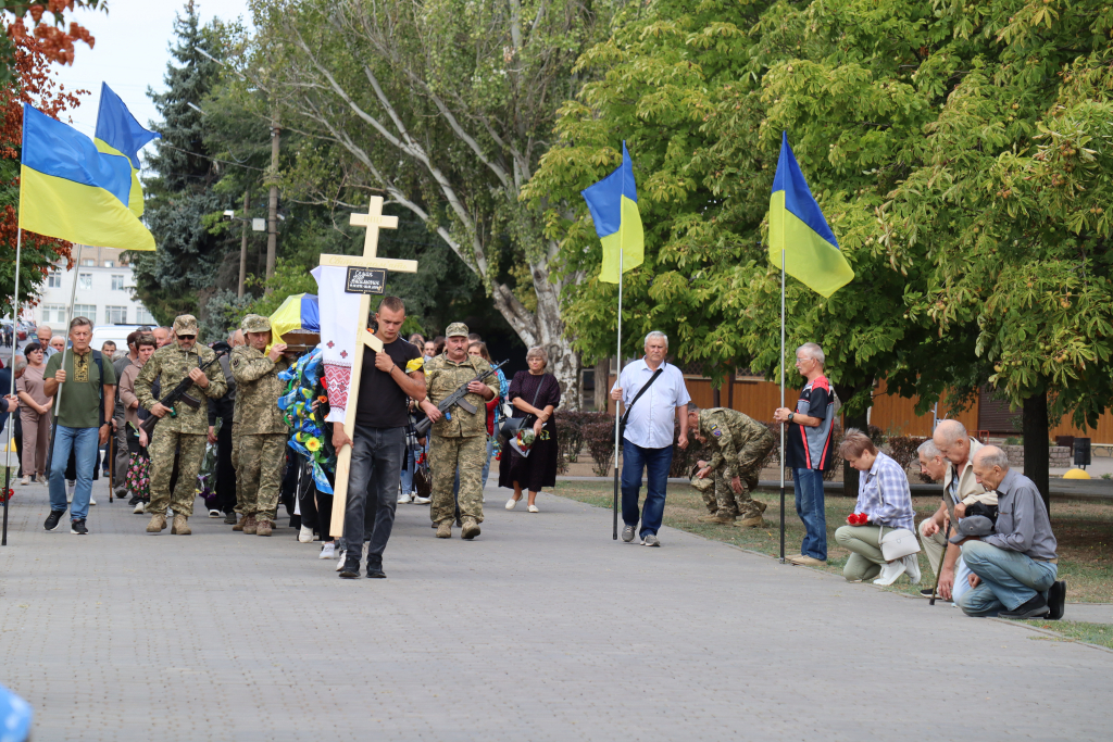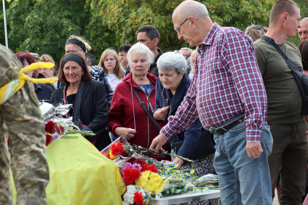Покровчани прихиляли коліна, вшановуючи Захисника. Рідні, друзі, представники влади несли живі квіти. Люди не стримували сліз.