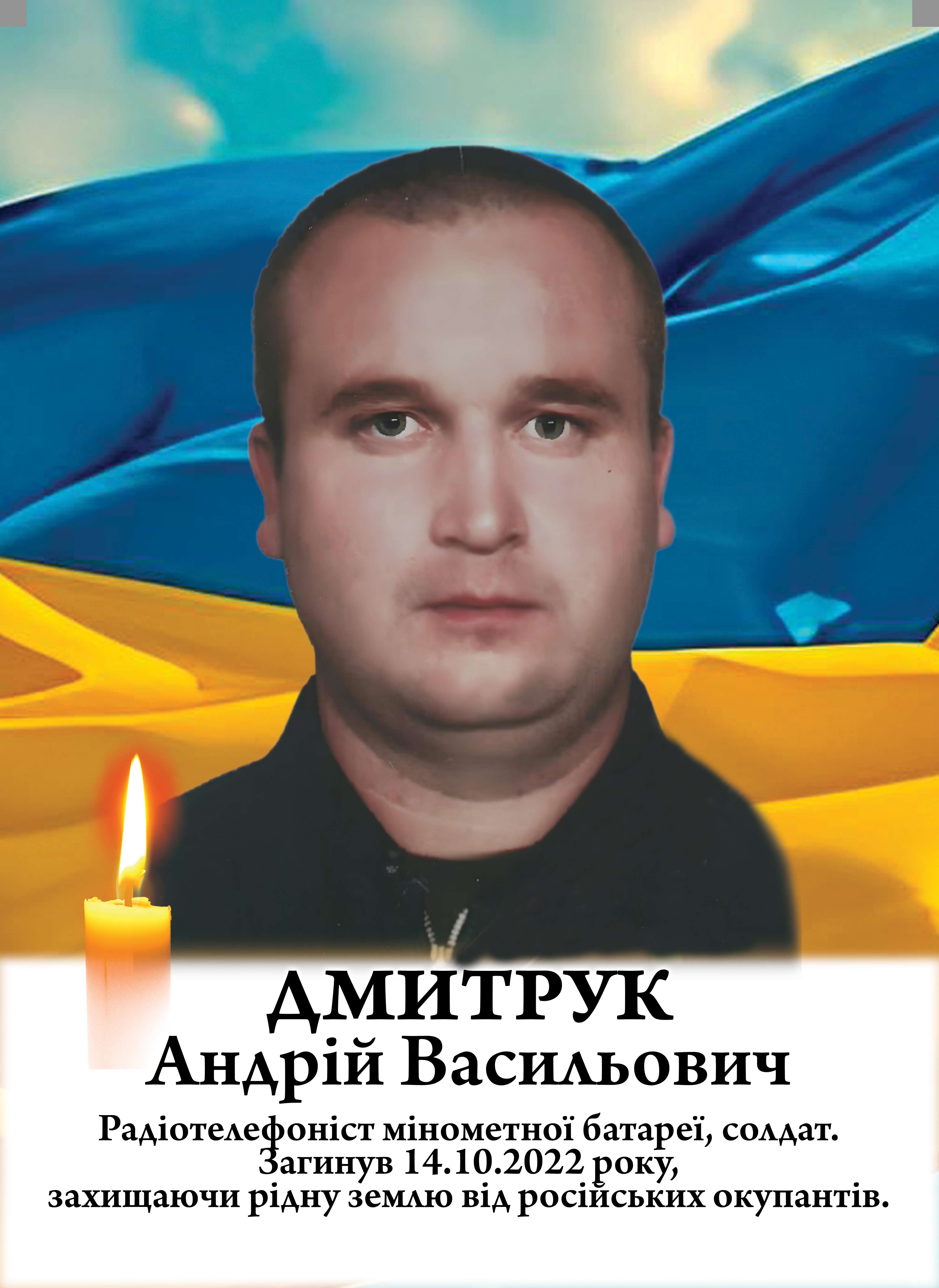 Андрій Дмитрук народився 4 квітня 1981 року в селі Новосеменівка Апостолівського району. Тут минуло його дитинство та шкільні роки. З ранніх літ вирізнявся доброзичливістю, щирістю та готовністю прийти на допомогу.