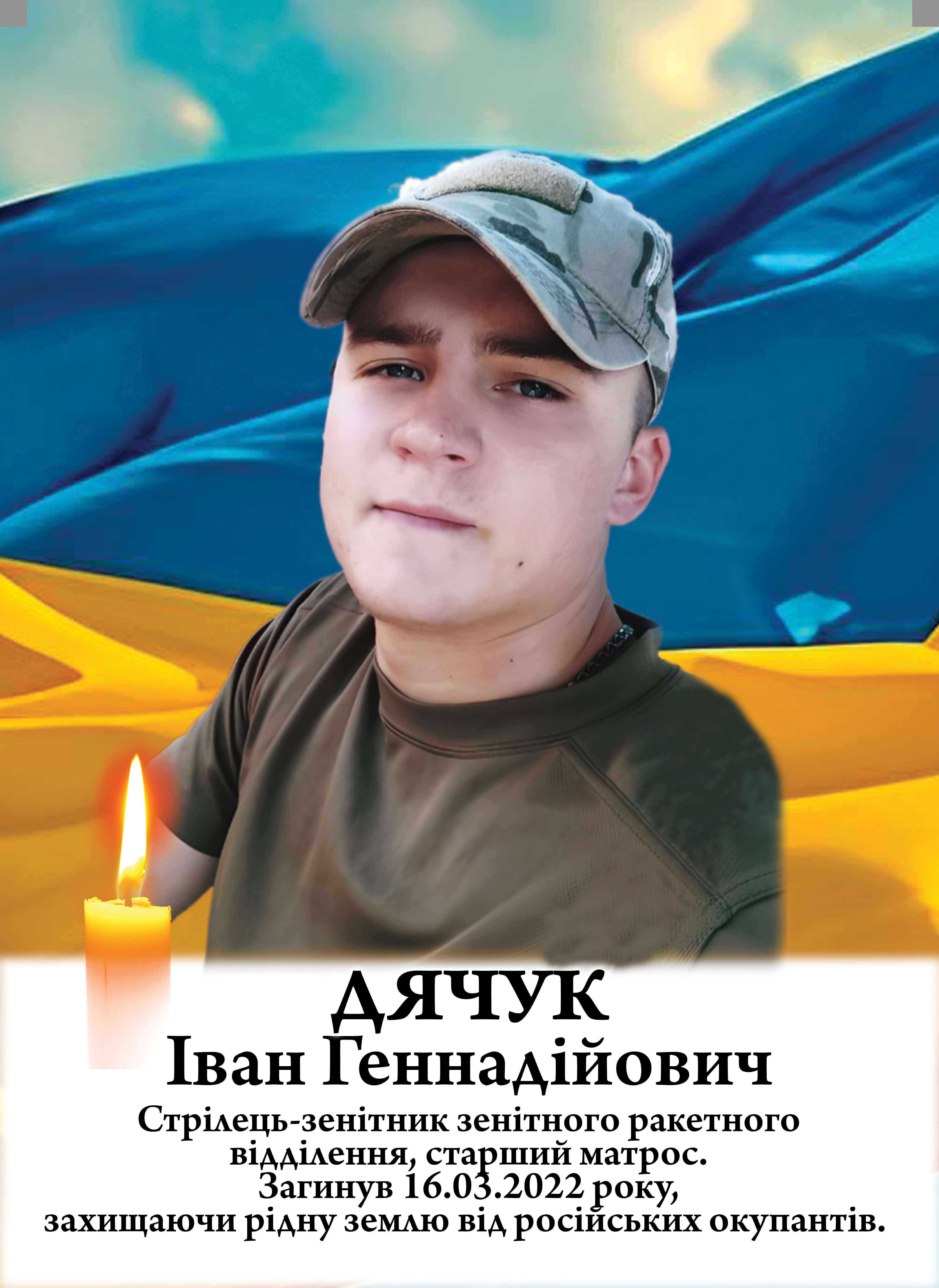 16 березня 2022 року під час виконання бойового завдання у Запорізькій області Іван Дячук загинув, виявивши мужність, стійкість та відданість присязі. Йому було 26 років.