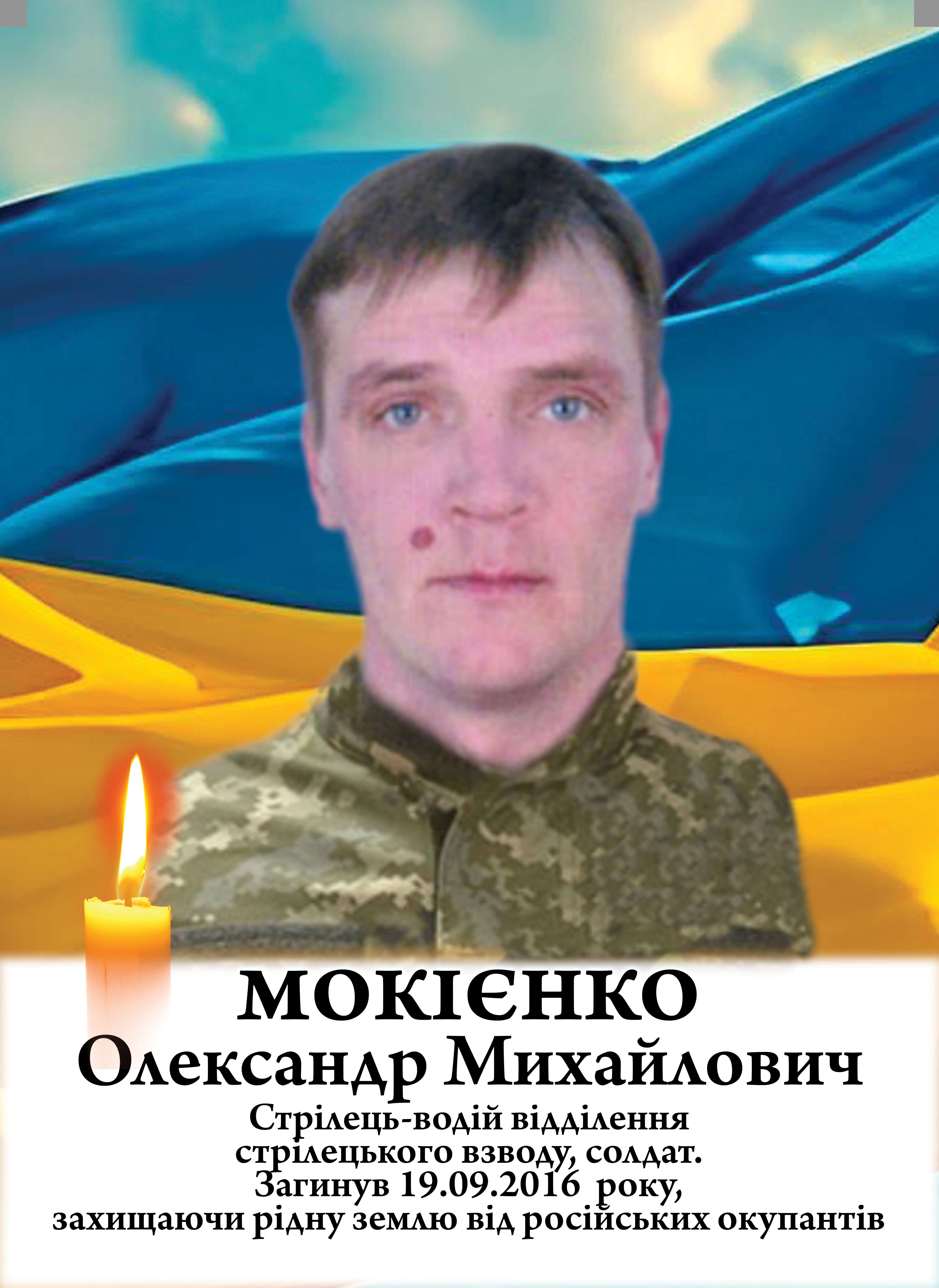 Життя Олександра Мокієнка обірвалося 19 вересня 2016 року у медсанчастині смт Великої Новосілки, що на Донеччині. Олександрові було лише 43 роки, в нього залишилася мати, сини.