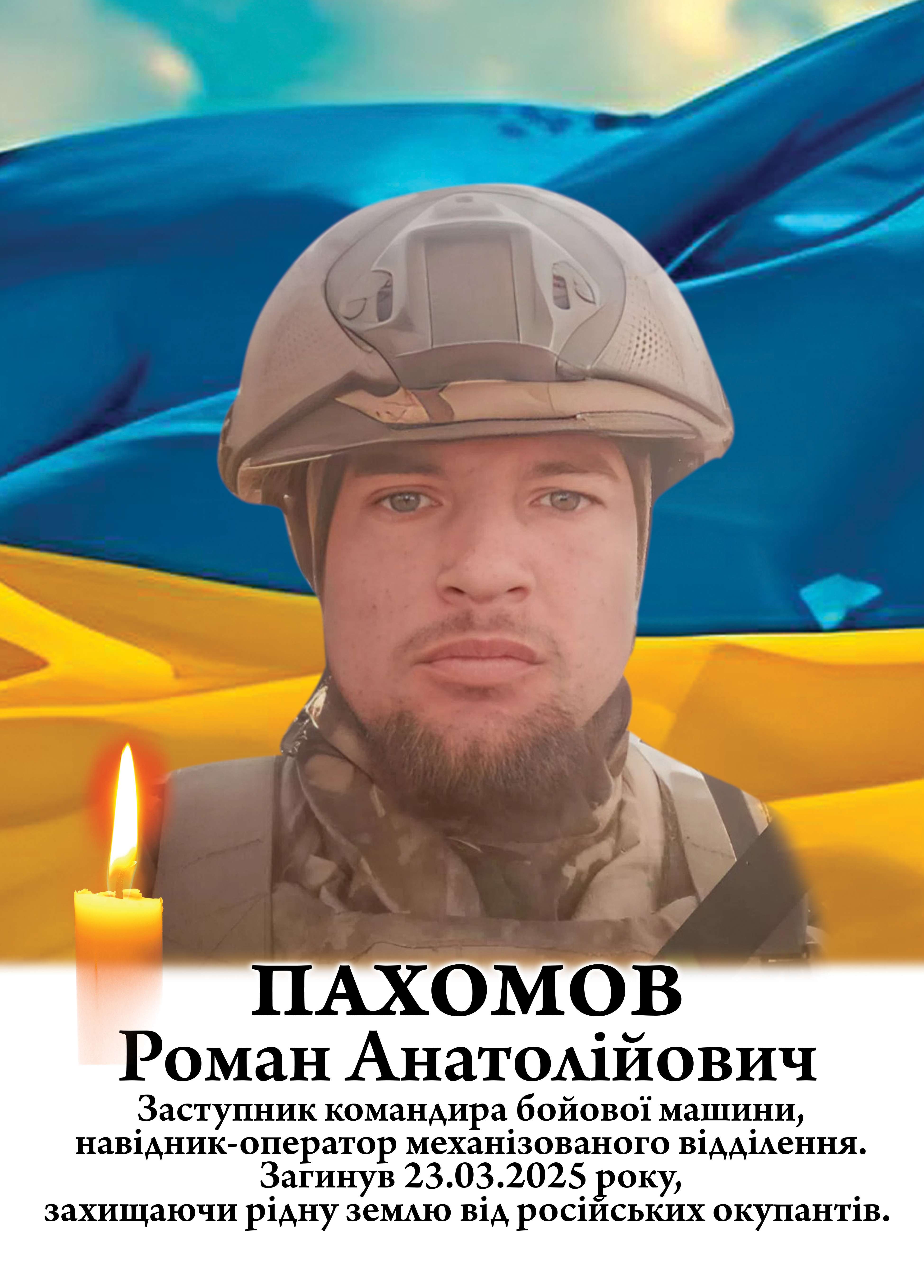 23 березня 2025 року поблизу населеного пункту Хуторо-Чаплине Синельниківського району Дніпропетровської області перестало битися серце Романа Пахомова. Йому було лише 29 років. У захисника залишилася мама.