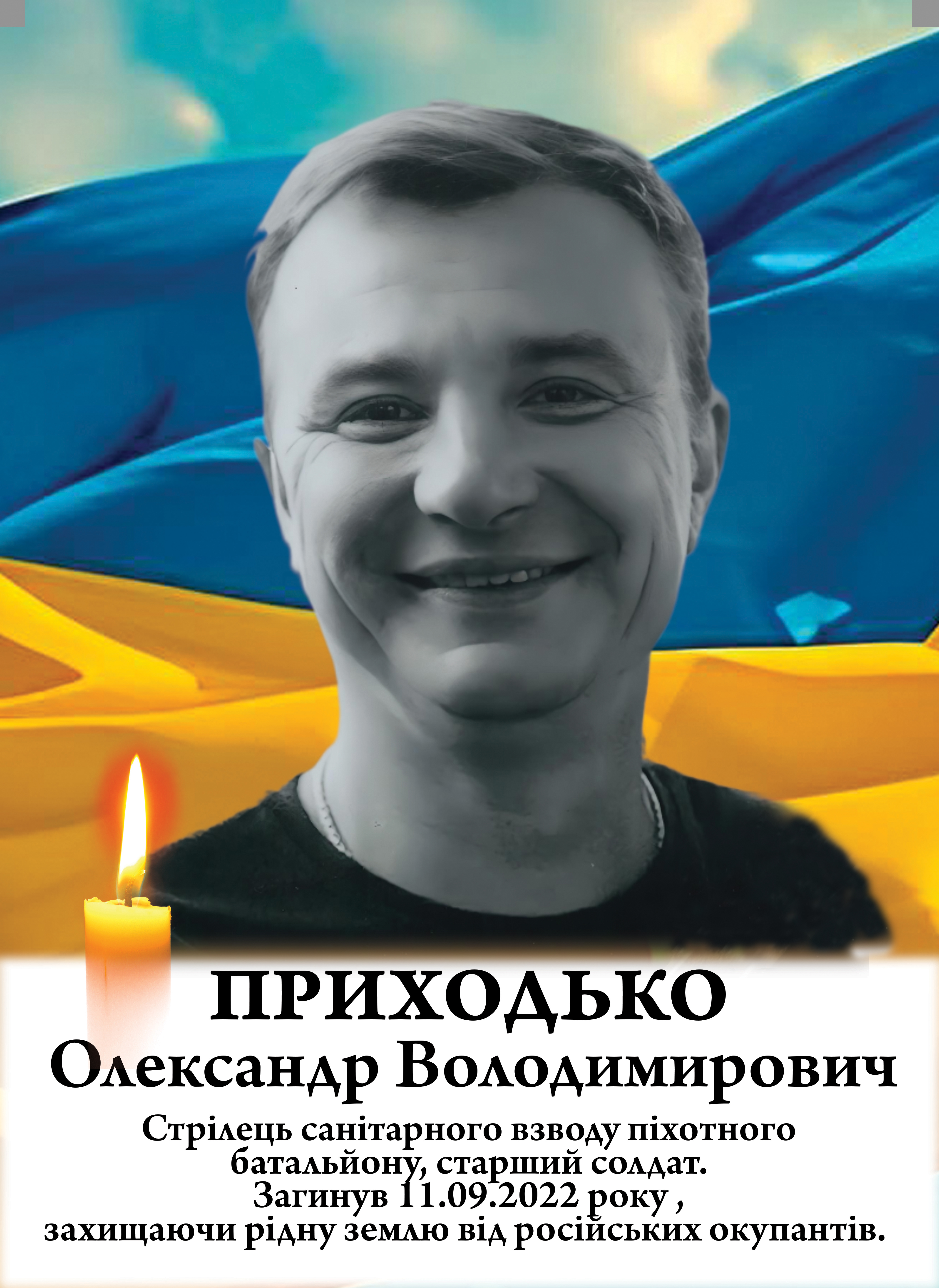 11 вересня 2022 року, під час артилерійського обстрілу в селі Високопілля Бериславського району Херсонської області, старший солдат Олександр Приходько загинув, виявивши мужність, стійкість і відданість присязі.