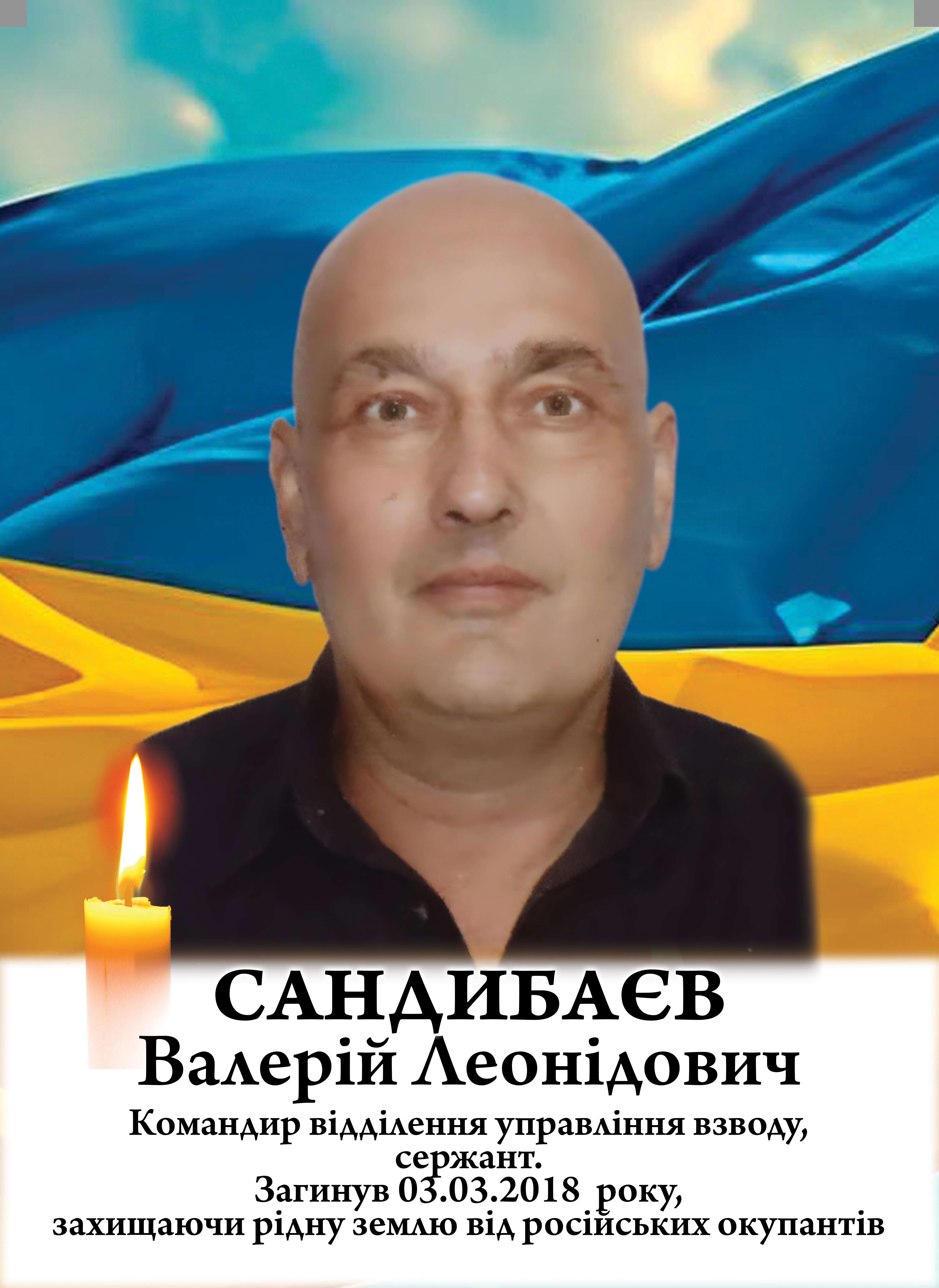 Валерій Сандибаєв народився першого січня 1971 року у місті Орджонікідзе (нині Покров). З дитинства проявляв розсудливість, рішучість, лідерські якості.