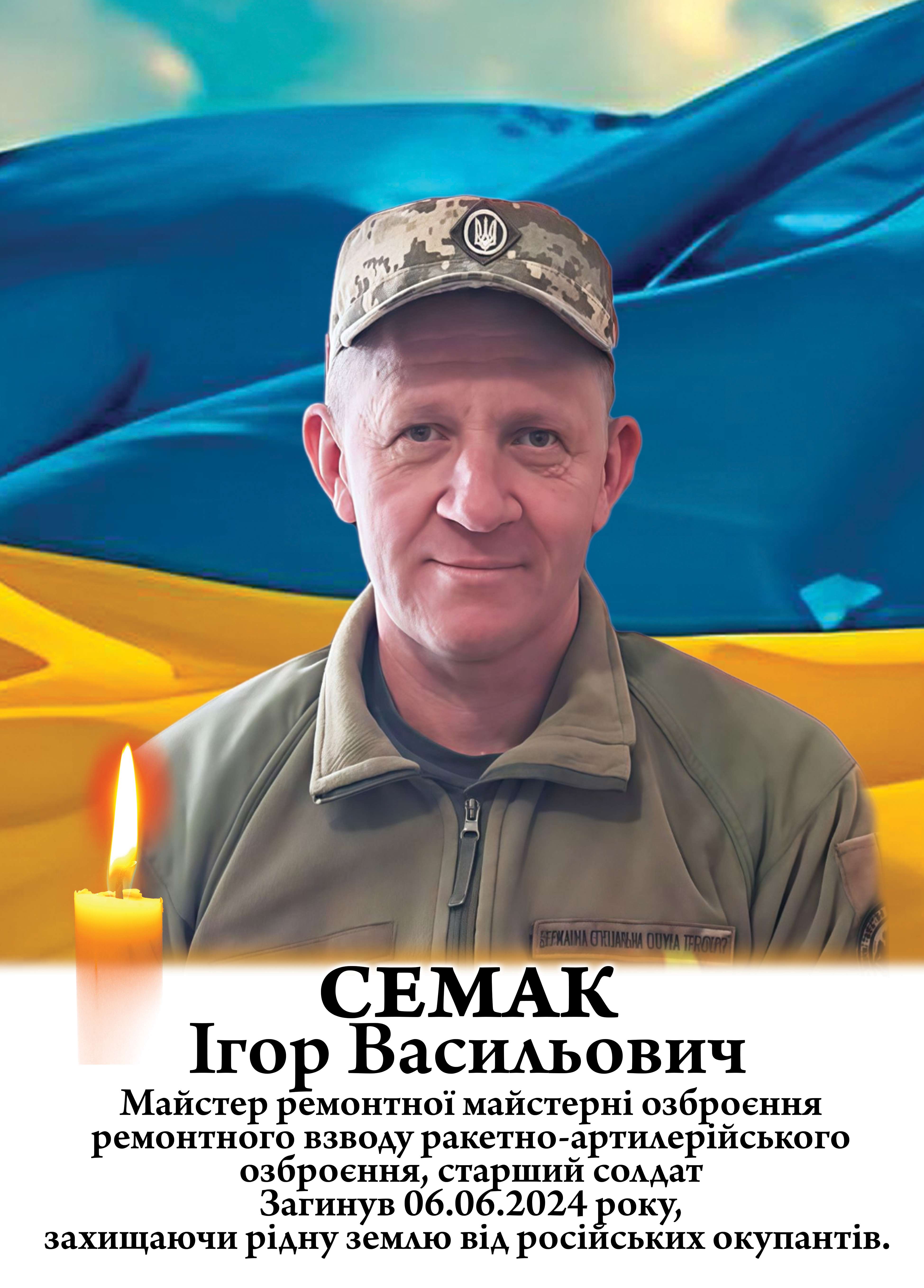 6 червня 2024 року, під час виконання бойового завдання в районі населеного пункту Нетайлове Покровського району Донецької області, Ігор Семак загинув, виявивши мужність, стійкість та відданість присязі. Тривалий час вважався зниклим безвісти. Йому було 51 рік. У захисника залишилися дружина, син і донька.